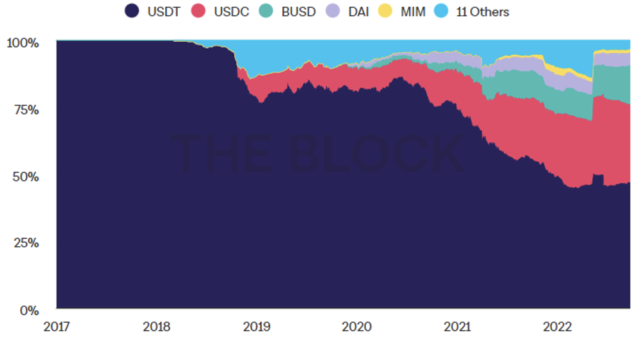 穩定幣占比(資料來源:THE BLOCK)