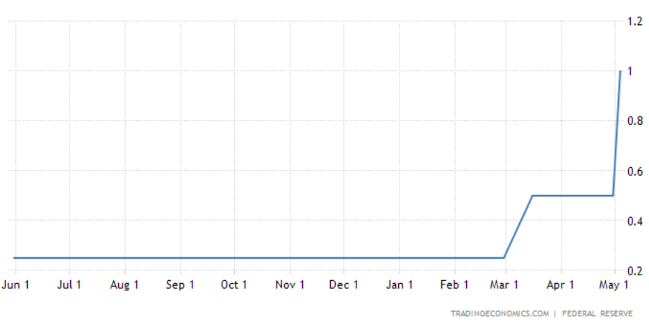 圖:近一年以來的美國聯邦基準利率